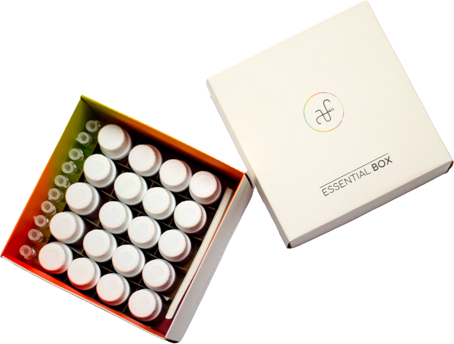 Para facilitar seus estudos, criamos um kit com essências naturais já diluídas para testes. Este coffret te permite experimentar, sentir e realizar os exercícios propostos na nossa plataforma. Durante a formação, as participantes receberão um total de 60 ingredientes, distribuídos igualmente com 20 ingredientes por módulo.